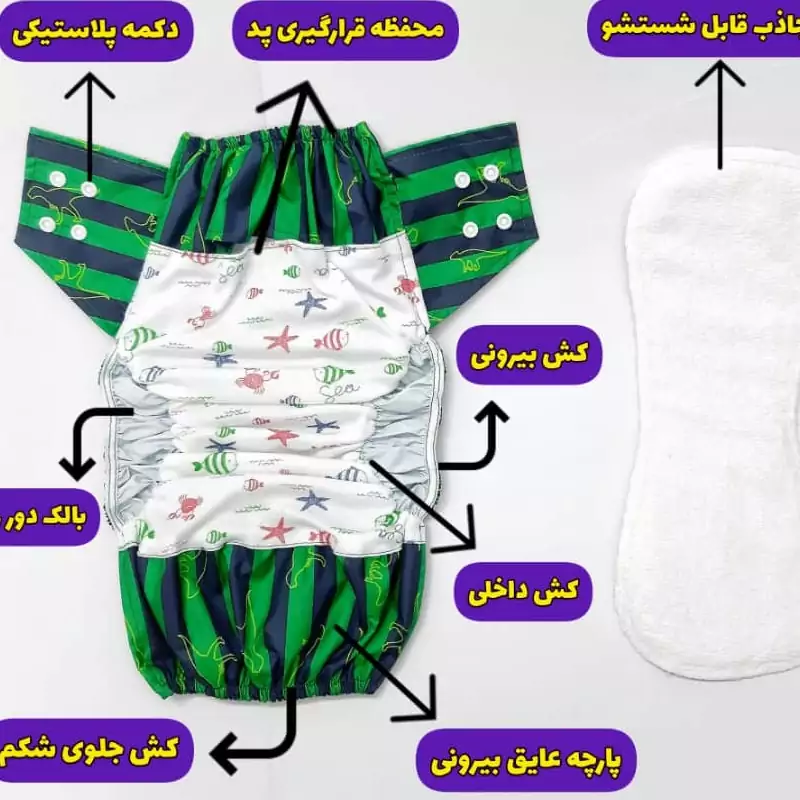 پوشک شب برای تایم طولانی تر طراحی و دوخت شده پشت و جلوی بلندتری دارد و مانع از نم دهی می شود در کناره های ران بالک دوخته شده که نم دهی رو از کناره پا بسیار کم می کنه دکمه سایز بندی کمر و فاق داره بین 6 تا 10 ساعت قدرت نگهداری داره🥰 ❗پوشک های یکبار مصرف دارای پودر جاذب هستن که بسیار سمی و مضرن، پس مامان عزیز با استفاده از محصولات ارگانیک آرتا پلاس سلامتی کودکت رو تضمین کن😍👌 با توجه به موجودی ممکنه پد داخل پوشک باز یا بسته باشه اگر براتون مهمه نوعش رو مشخص کنید